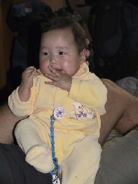 Arrivati, la direttrice, una vera matrona, ci ha accolti nel suo ufficio e ha cominciato a discutere animatamente (in mongolo) con Sira, che assumeva un’espressione via via più tesa e irritata. Ad un certo punto ci dice che non è più possibile scegliere il bebé, e in quello stesso istante entrano due infermiere con una bambina e me la mettono tra le braccia. Era Marie. Ho sentito all’immediato un amore e un legame profondo verso questa bambolotta con delle guancie realmente smisurate… che importava, a quel punto, non aver potuto scegliere!!!!