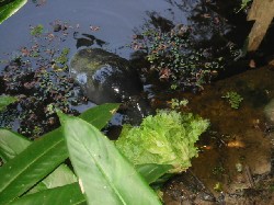The tour starts by giving fresh salad to a manatee, hosted in a natural pond next to the reception area of Pilpintuwasi. Gudrun tells us that she had refused to buy the animal – she sometimes must put a stop to a flow that could easily become uncontrollable….. -, but considering that manatee is a much endangered species and that the person who was selling it would have slaughtered it hadn’t he found him a house, she finally accepted.