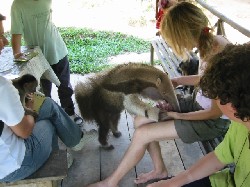 It is really inspiring to see how Gudrun manages all this, and how happy the animals are with her. While we sit in the shade of the reception hut, and the monkeys explore our hair with incredible concentration, the anteater Rosa arrives: what an incredible amazing creature!!! She arrived to Pilpintuwasi with a student of Gudrun that realized that the people where he lived, and where Rosa was held, did not provide her with appropriate care. Rosa walks up to Gudrun and “hugs” her, putting her long muse into her legs and greedily accepting some patting and caressing. A young boy follows: he’s the one who is taking care of Rosa today, bringing her back home after a walk and giving her a bath. Gudrun tries to have boys and girls of the area taking care of the animals. It is the fastest and more natural way to approach the richness they are given for free.