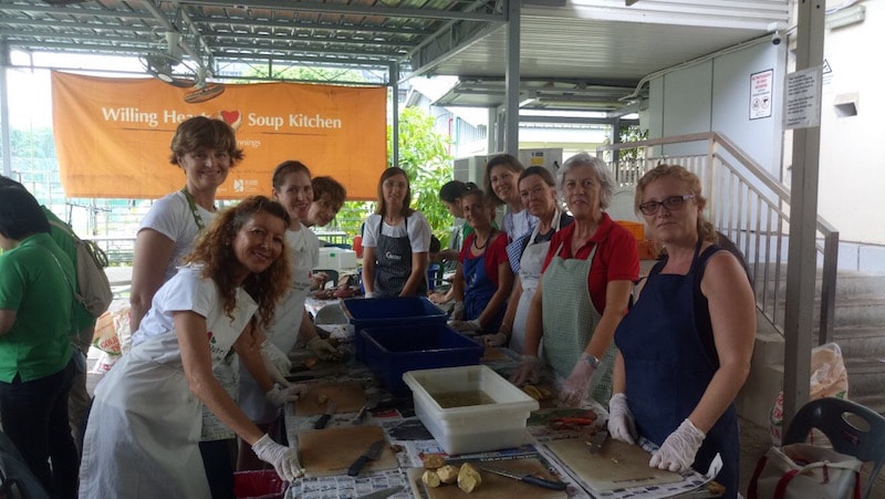 Siamo oggi più di cento donne iscritte all’associazione e tantissime socie partecipano alle molte attività. Tra queste la charity, sia attraverso il volontariato attivo che con l’organizzazione di eventi. Antonella e Stefania sono responsabili per la Charity a AG Home, una casa famiglia per adolescenti, così come a Willing Hearts, un’associazione che a Singapore prepara pasti per i più bisognosi 365 giorni all’anno; ogni martedì andiamo tutte insieme a Willing Hearts a tagliare le verdure o a preparare spiedini di pollo o ancora a pulire il pesce. Alla fermata MRT Eunos ci si aspetta tutte: Alessandra, Paola, Francesca, Alma, Perla, Maria, Michela, Giovanna, Lorenza, Amber, Roberta, Martina, Elisabetta … insieme si va con un sorriso, due mani di aiuto e un cuore aperto e ben disposto ad aiutare chi ne ha bisogno.