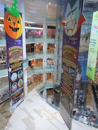 Sono arrivata ieri sera, e indovinate dove sono andata questa mattina? Ma al centro commerciale, naturalmente! Dovevo comprare un po’ di cose per Grigiotta, la mia gattaexpat che arriverà (speriamo) oggi pomeriggio, quindi ho preso un taxi e mi sono fatta portare al mall più vicino, il Gandaria City Mall. Sono scioccata dal numero di centri commercial a Jakarta. Sono ovunque, enormi, e quasi sempre lussuosi. Mio marito mi aveva detto che a Gandaria c’è un bel supermarket, ma non ricordavo più a che piano. Quindi appena arrivata mi son messa a camminare su e giù per trovarlo. Ho scarpinato, preso scale mobili, camminato ancora, e dopo mezz’ora ancora non l’avevo trovato. Mi sono sentita un po’ scema, umiliata e piccolina…Incredibile come si perda subito tutta la sicumera quando si esce dalle proprie pareti culturali! Alla fine ho chiesto, e me l’hanno indicato subito. E ho scoperto che anche a Jakarta Halloween è festeggiato profusamente…