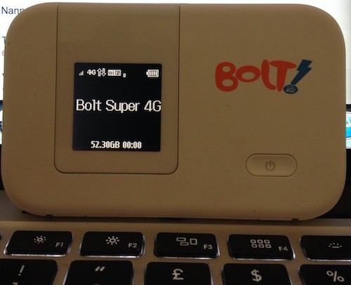 Signore e signori, sono lieta di presentarvi il BOLT! Il Bolt vi salverà in più occasioni se avete bisogno urgentemente di internet, e la connessione di casa vostra vi lascia a piedi (come spesso succede, perché le connessioni a Jakarta lasciano in generale a desiderare). Ecco il Bolt: