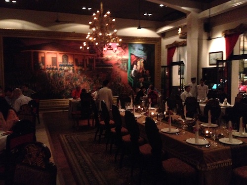 Se una sera volete mangiare in stile, andate al Kunstkring Paleis (https://www.tuguhotels.com) a Menteng. E’ un edificio coloniale dal sapore molto olandese ma con la grandiosità dello stile indonesiano. Il ristorante è in un salone sontuoso ed elegante, e a fianco ha altre sale, tra cui uno splendido bar Suzie Wong, e una sala a un solo tavolo piena di fotografie d’epoca. Il menù è perlopiù indonesiano e molto buono. E’ caro ma niente di non abbordabile. Ha anche una galleria d’arte e un negozio di artigianato locale.