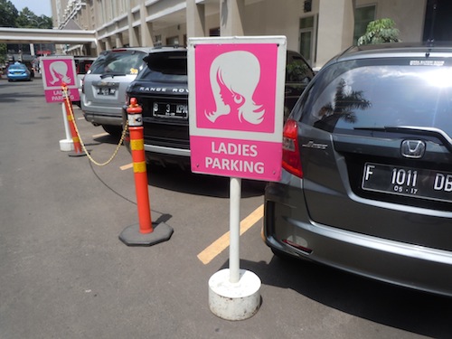 Non so se sia l’espressione di una società altamente maschilista, che pensa che noi donne non siamo capaci di parcheggiare e quindi ci riserva uno spazio apposta, o semplicemente un gesto gentile nei nostri confronti, ma non mi disturba affatto sapere che c’è una parte del parcheggio riservato a noi…Ora la cosa che va capita è se possiamo comunque parcheggiare dove ci aggrada, o se dobbiamo trovare un posto nei pochissimi riservati a noi…ve lo farò sapere quando lo scopro…o ditemelo voi se già lo sapete, grazie!