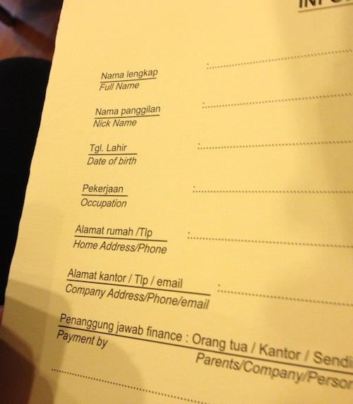 Dovevo fare un check-up per un’assicurazione medica, e questa mattina sono dunque andata al SOS International, che mi è stato unanimamente segnalato come il posto migliore da tutti gli expat. E in effetti, sono stata positivamente impressionata! Sono andata alla clinica di Cipete. Il personale è gentilissimo (ma questa non è certo una novità qui), professionale e attento. Mi hanno ricevuta immediatamente e accompagnata impeccabilmente durante tutta la procedura – e avevo parecchi esami da fare! Ero a digiuno dalla sera prima, e dopo l’esame del sangue l’infermiera mi ha chiesto se volevo far colazione, offrendomi riso fritto e un’altra cosa che non ho capito. Le ho detto sorridendo che andava benissimo il riso fritto, e lei mi è parsa molto felice – sicuramente ha pensato che adoro questo piatto nazionale, non certo che non ho capito cos’era l’alternativa (vi immaginate? Magari era la torta al limone, la mia preferita…). Ho fatto tutti gli esami, poi sono stata visitata da una dottoressa molto accurata e simpatica. Mi chiameranno quando saranno pronti i risultati (mi han detto che ci vorranno 507 giorni lavorativi ahahahahaha, no, in realtà sono da 5 a 7 ma io non capisco mai una mazza quando mi parlano in inglese!) e posso scegliere di andare a ritirarli o di farmeli mandare scannerizzati via posta elettronica. Comunque insieme allo Spa Puri Santi, di cui ho parlato sotto, questo è stato il posto dove ho visto la più altra concentrazione di espatriati finora a Jakarta.